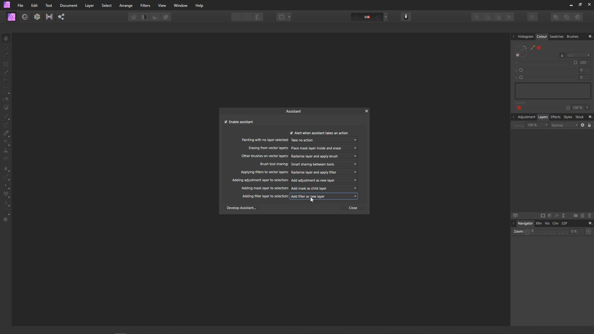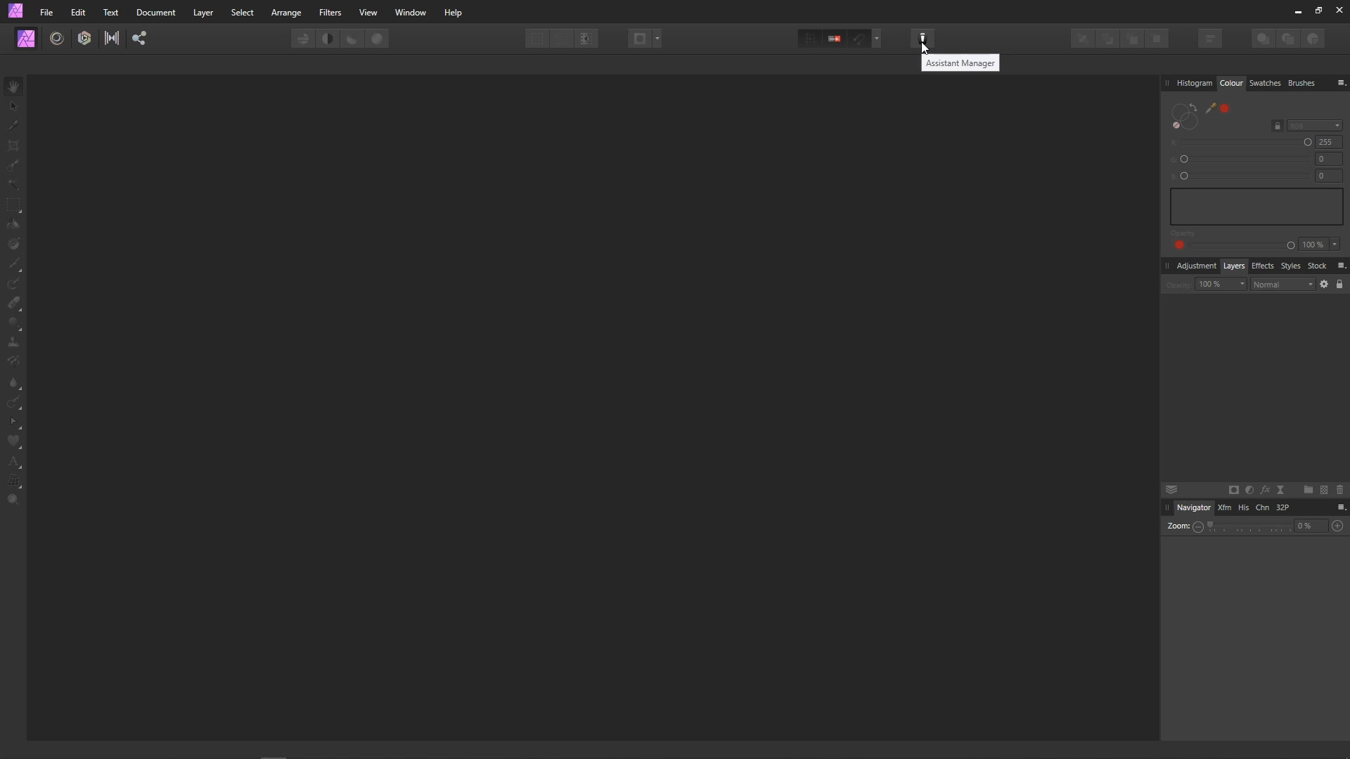 Before we start, we need to make a quick change to one of Affinity Photo's settings. Open up the Assistant Manager.
