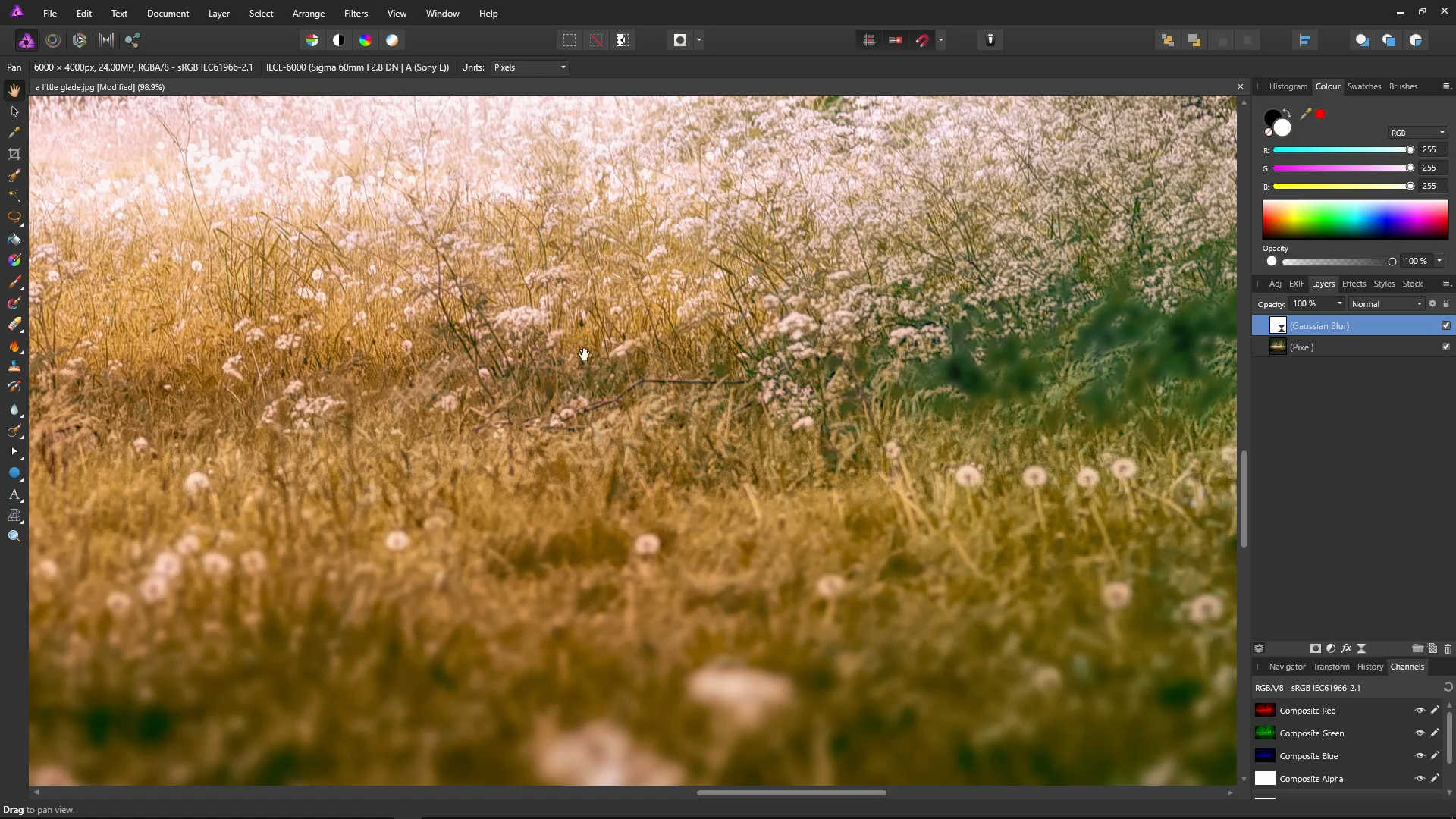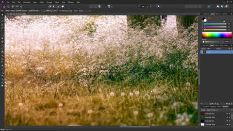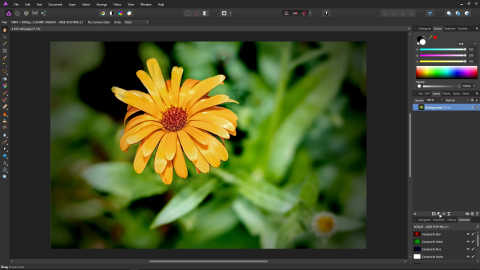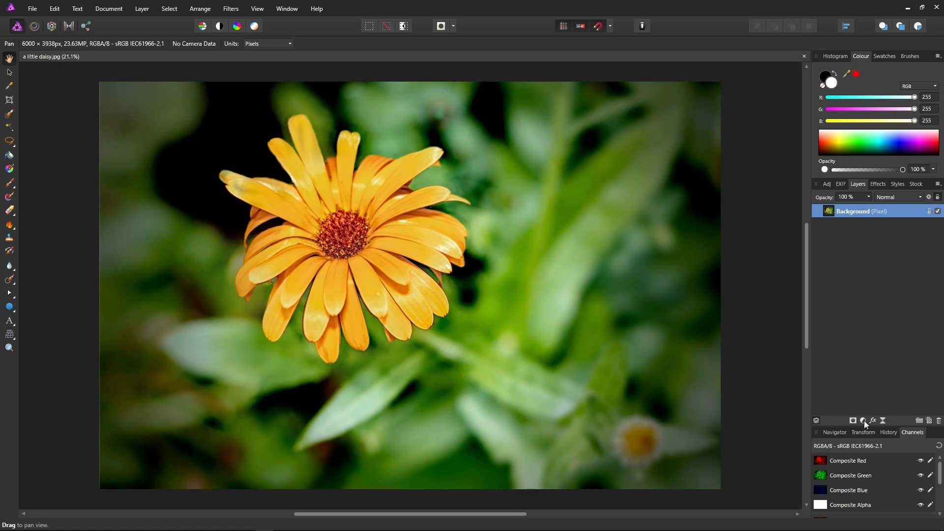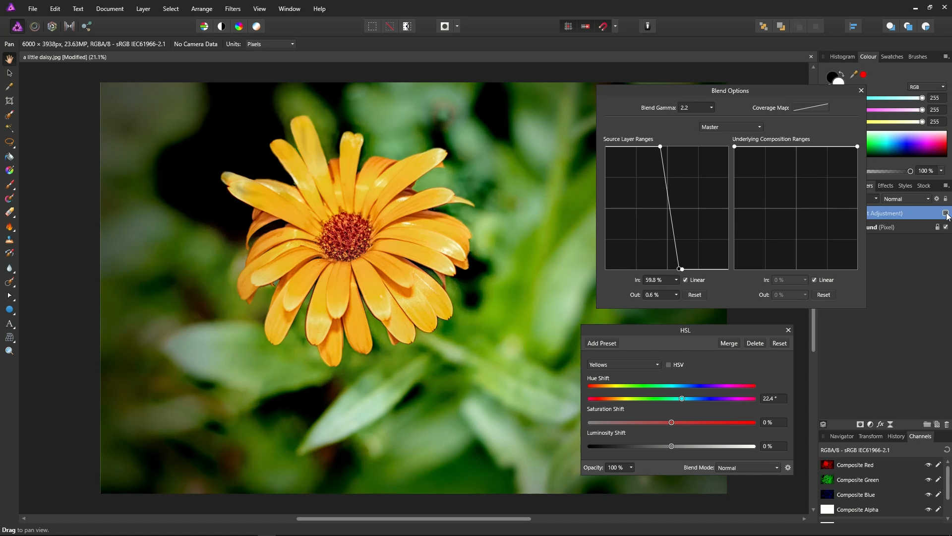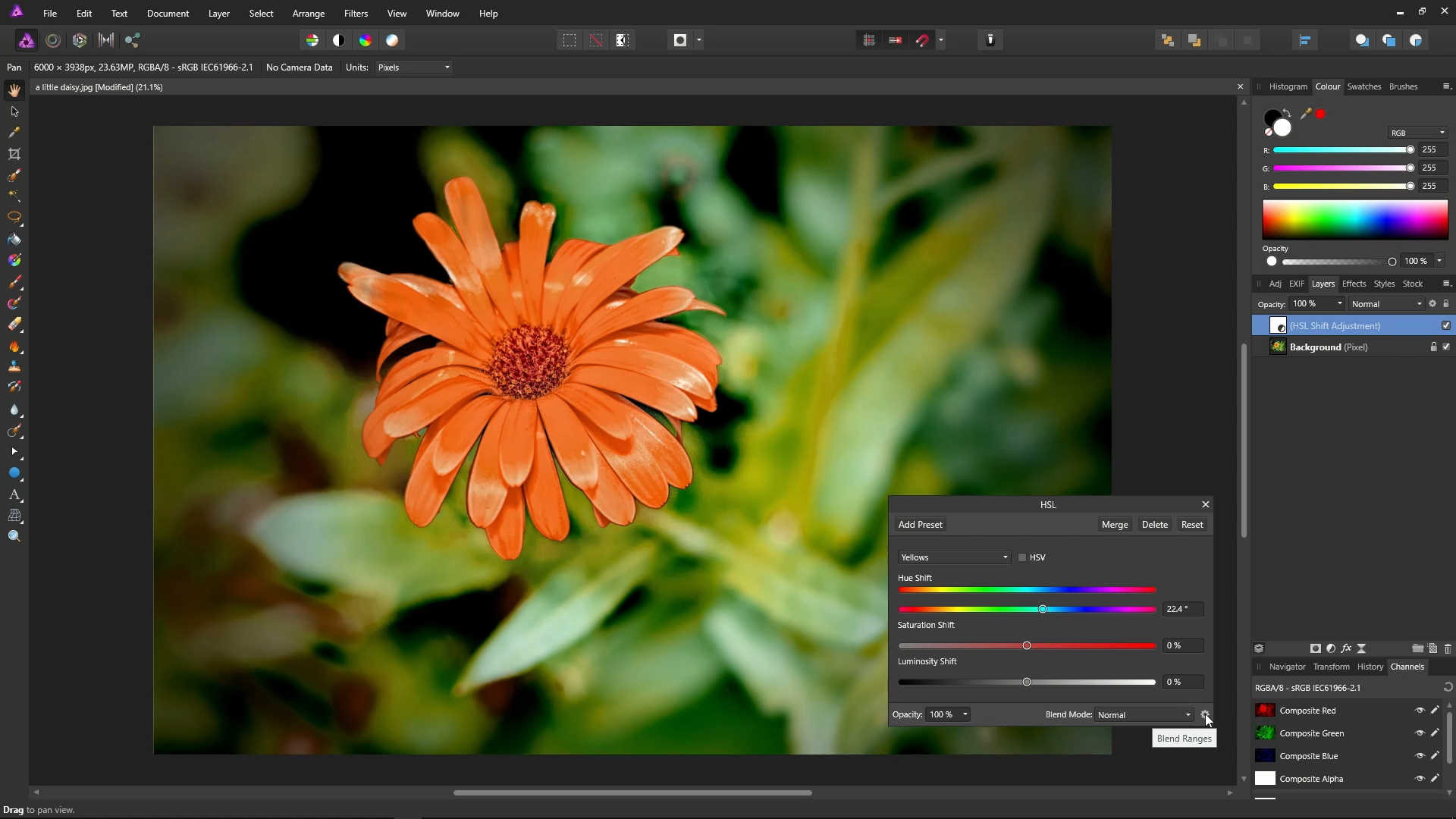 Let's try using Blend Ranges with a colour change adjustment. Open up a photo. We've gone with a photo of a big yellow flower.