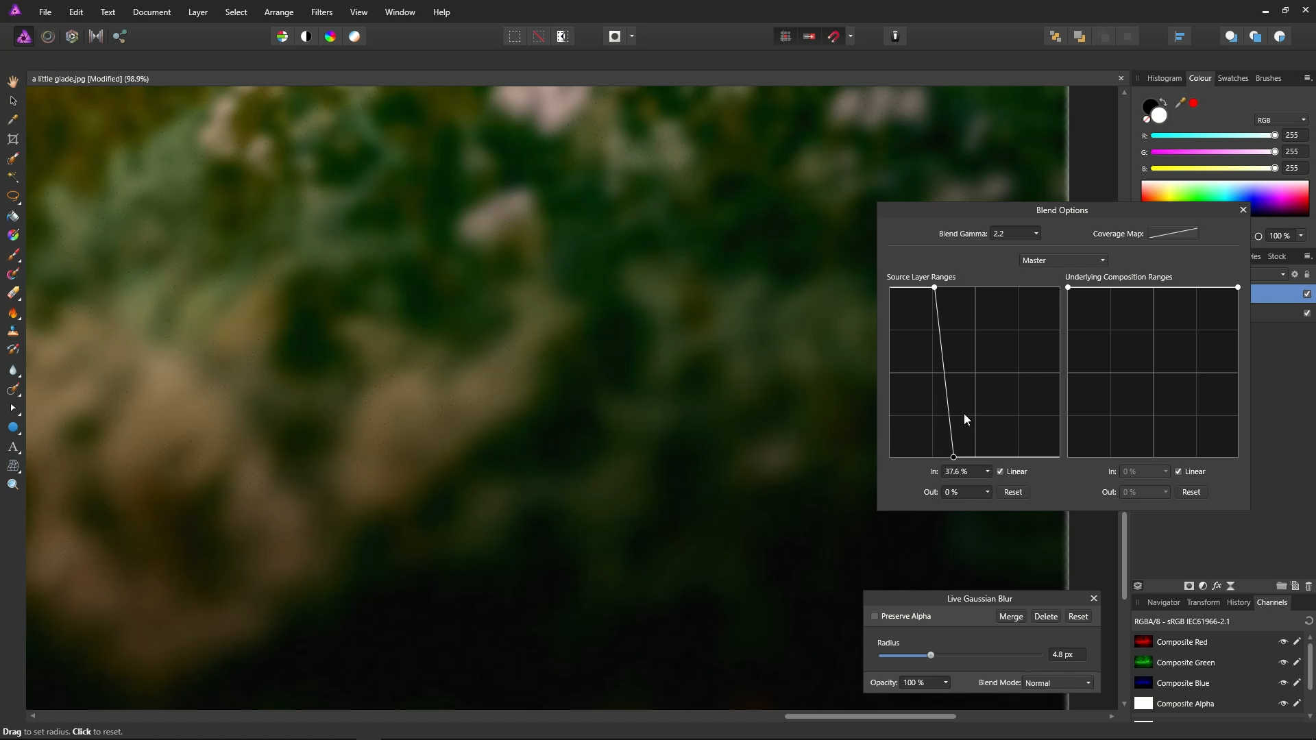 Once you have brought up the Blend Ranges dialog, move it out of the way of the image by dragging it from its title bar.